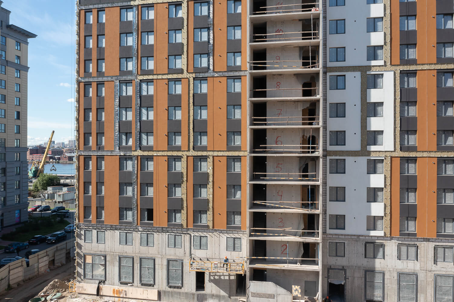Группа компаний «ФСК»: ООО «Специализированный застройщик «Октябрьская набережная». Используемые рендеры являются ознакомительными и носят рекламный характер. Застройщик оставляет за собой право вносить корректировки в цветовую палитру и общую концепцию, менять марки производителей